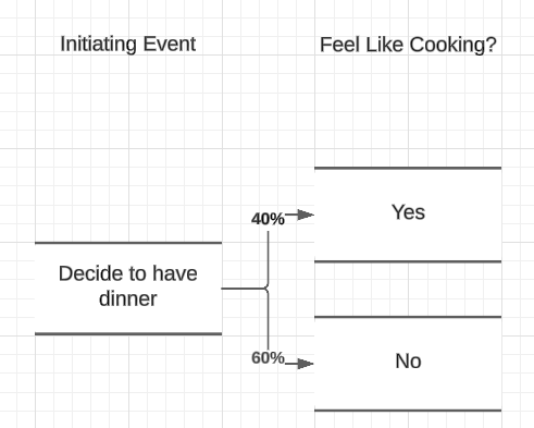 We start out with the initiating event, in this case that I've decided it's time to eat. Obviously that leads to a natural decision to be made, and subsequent events.